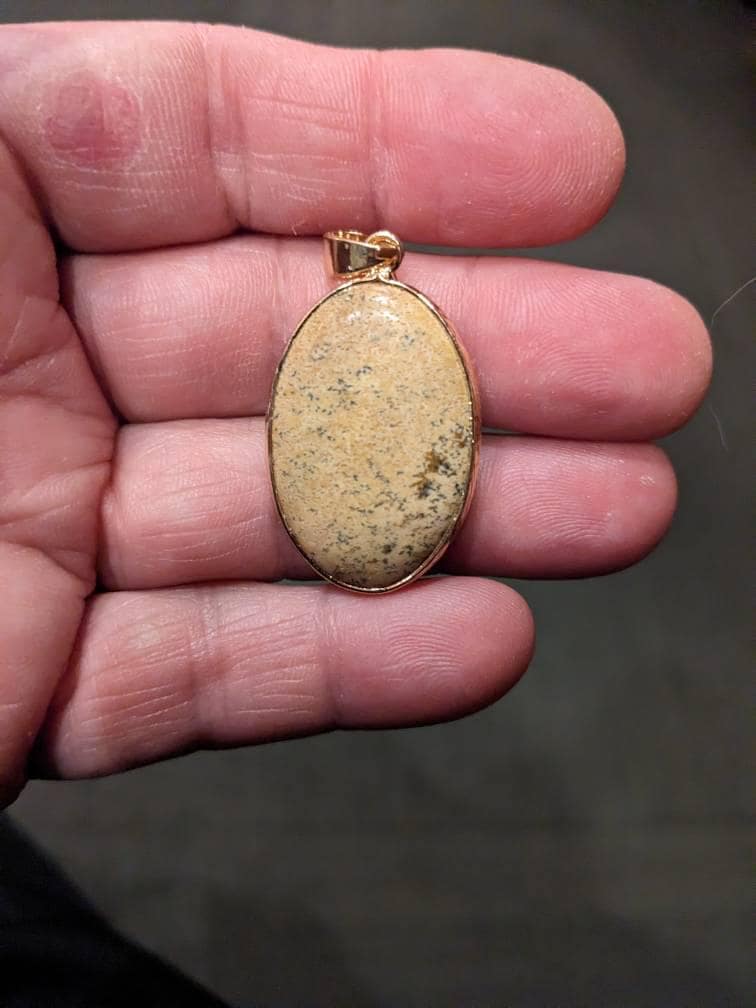 This listing is for a large beautiful Natural Picture Jasper and gold plated brass metal oval pendant. Each pendant is made with carefully and skillfully hand cut polished stone. Each pendant is 35-36x21.5x6.5mm in size with a 6x11mm hole. These beautiful pendants include a Brass metal snap on bail finding making them perfect for easy jewelry making.