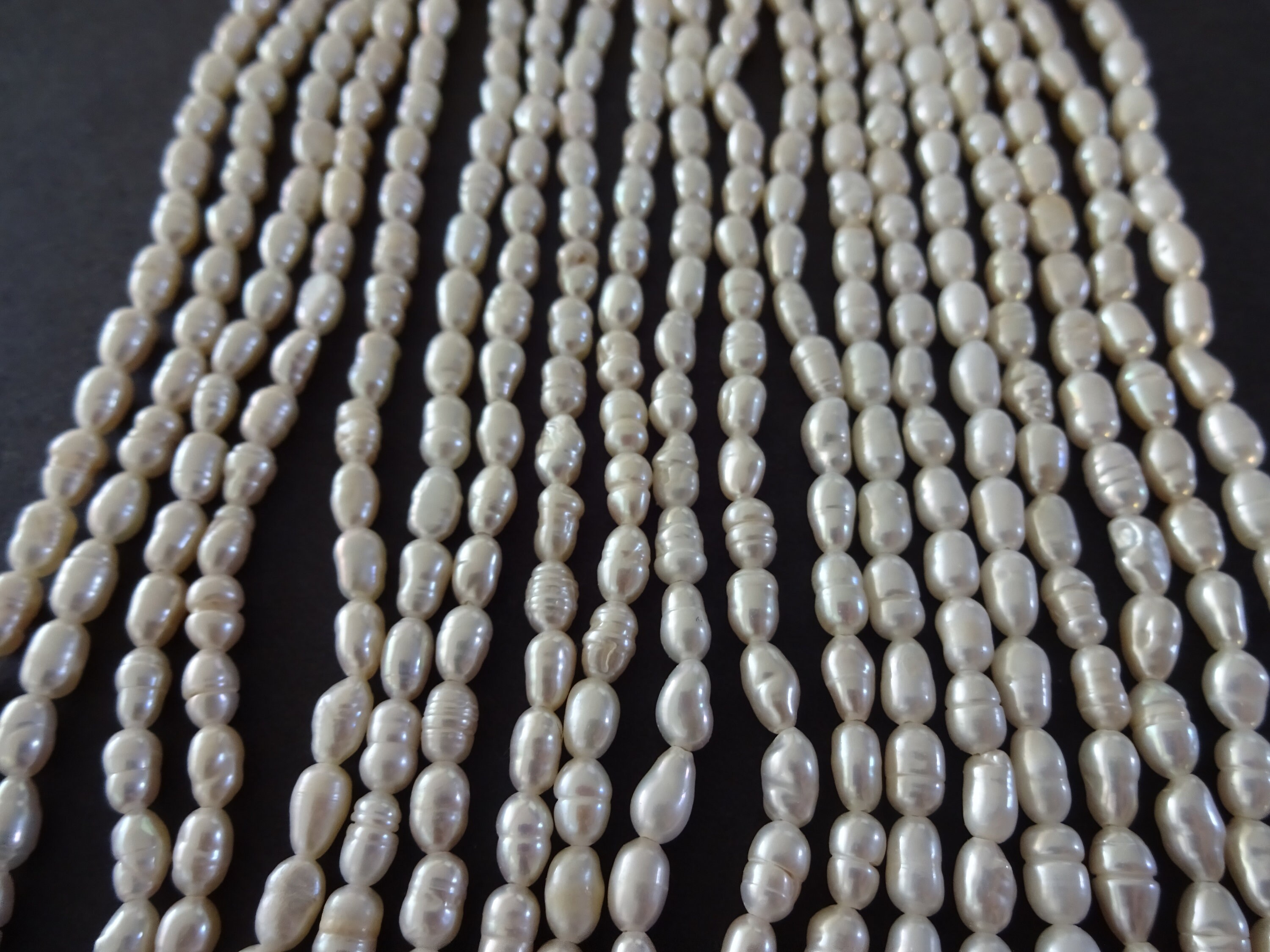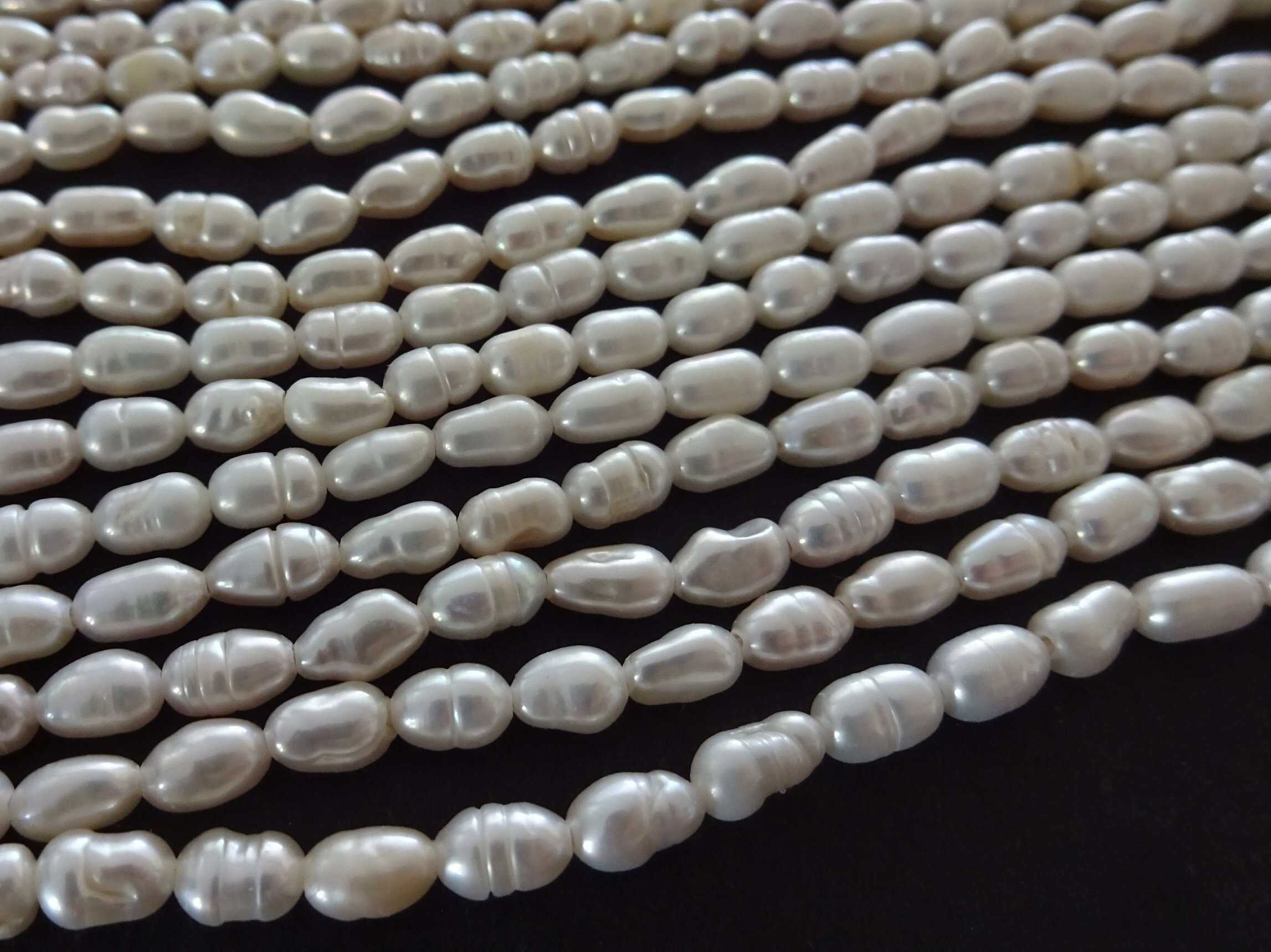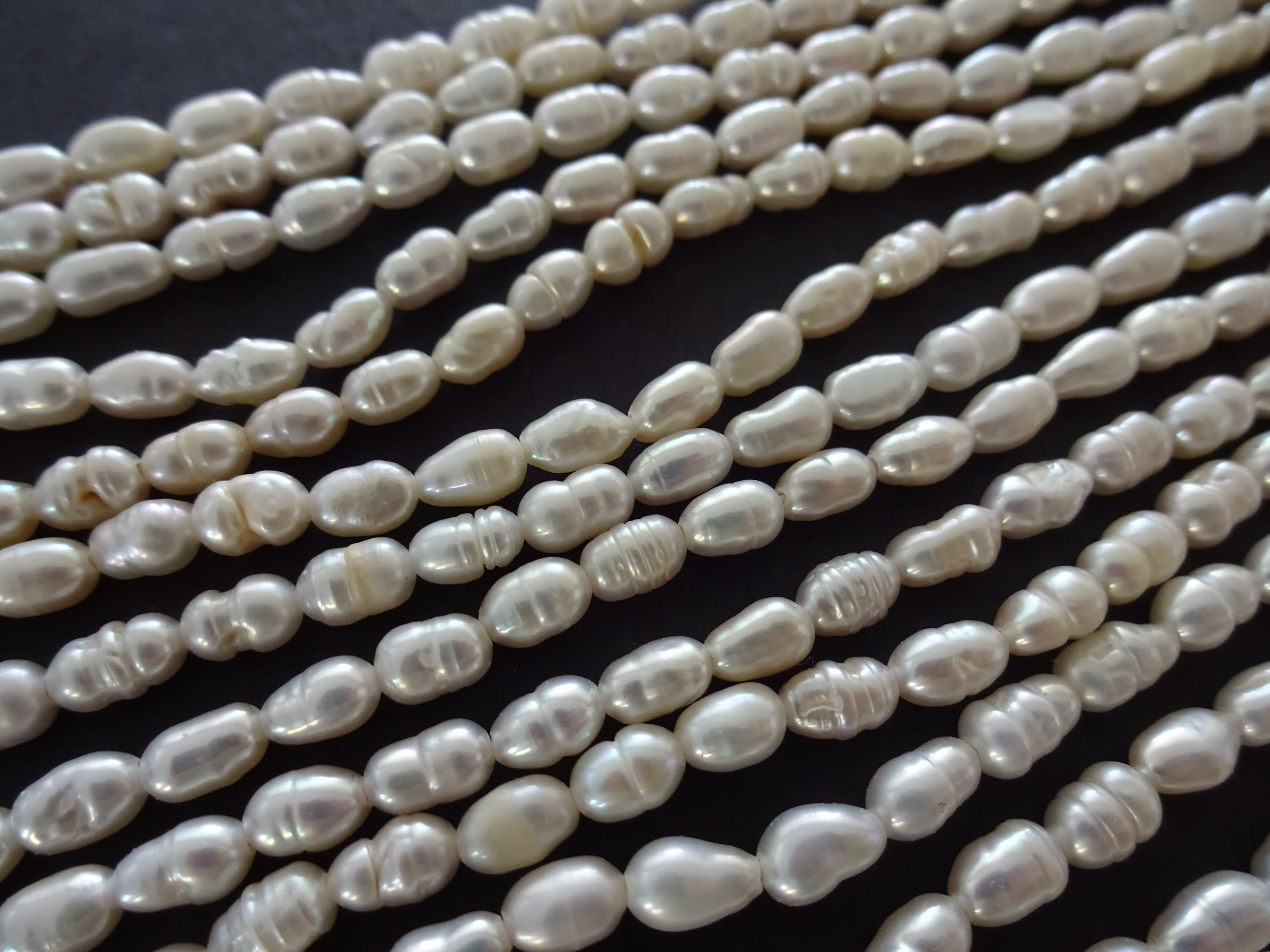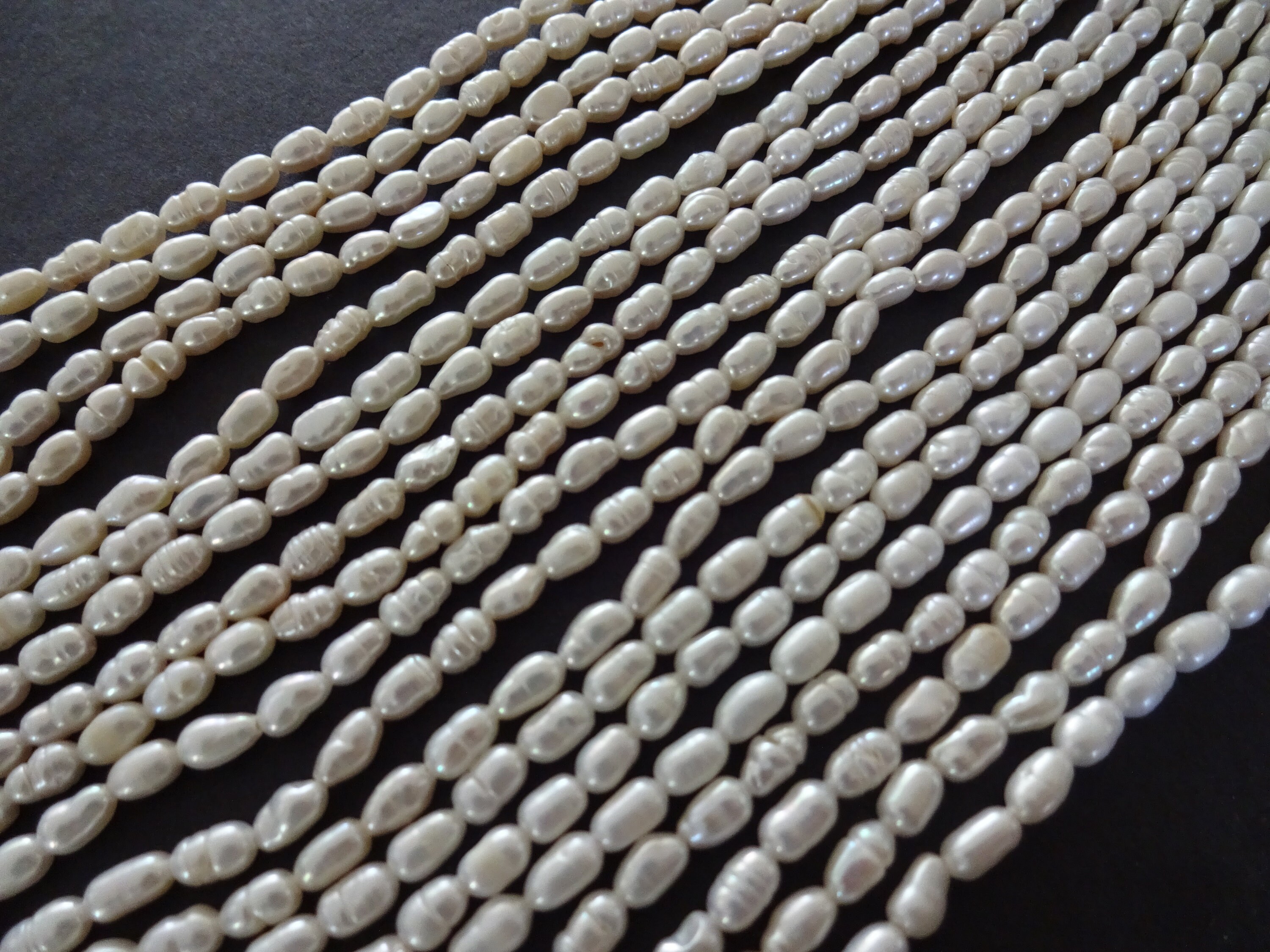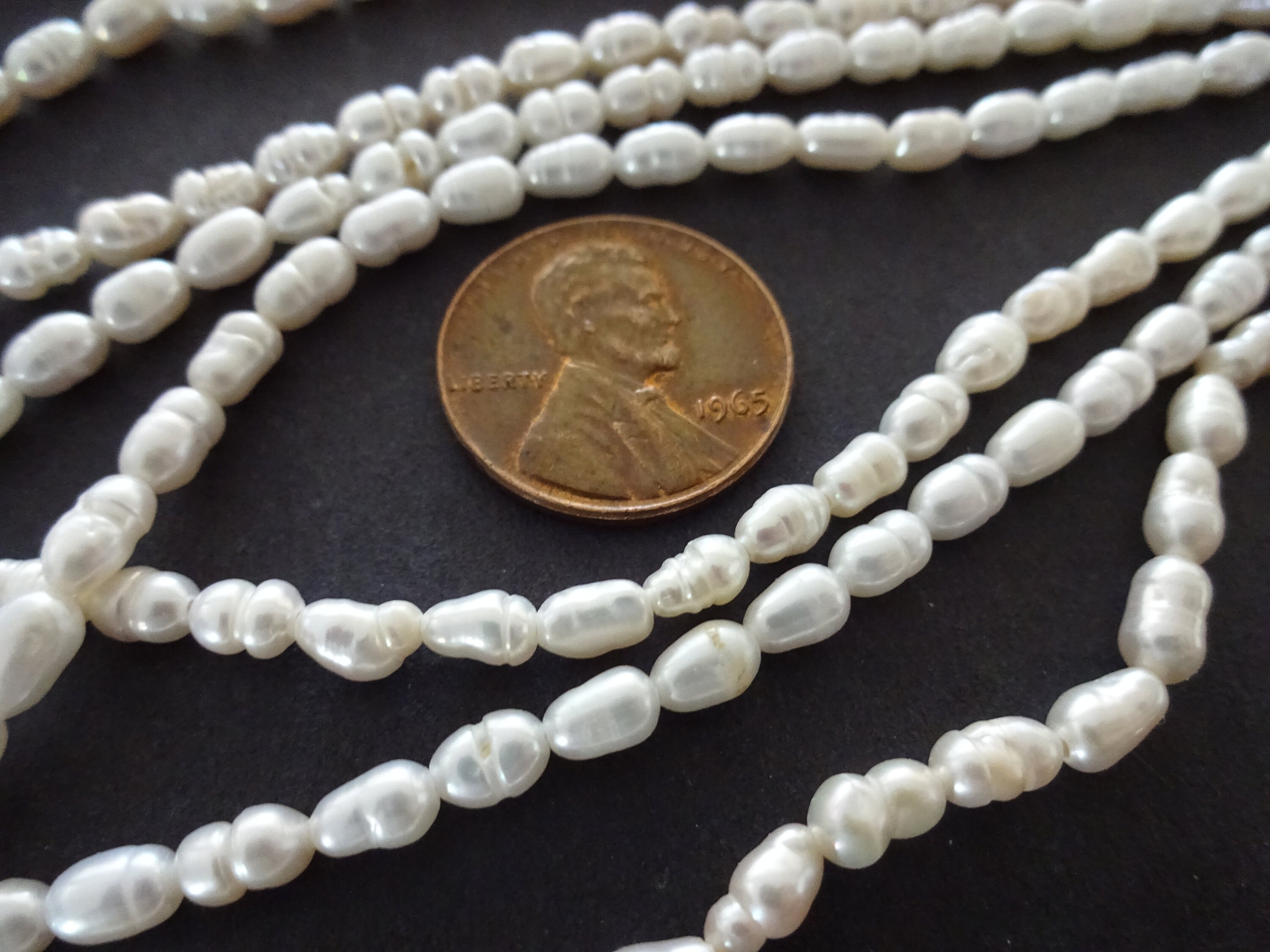 This listing is for a beautiful Natural Freshwater Pearl bead strand. Each strand is 14 inches long with about 68 oval rice shape beads. Each white pearl bead is 3-4x4-6mm with a .8mm drilled hole. Create beautiful pearl and nautical jewelry pieces with these natural pearls.