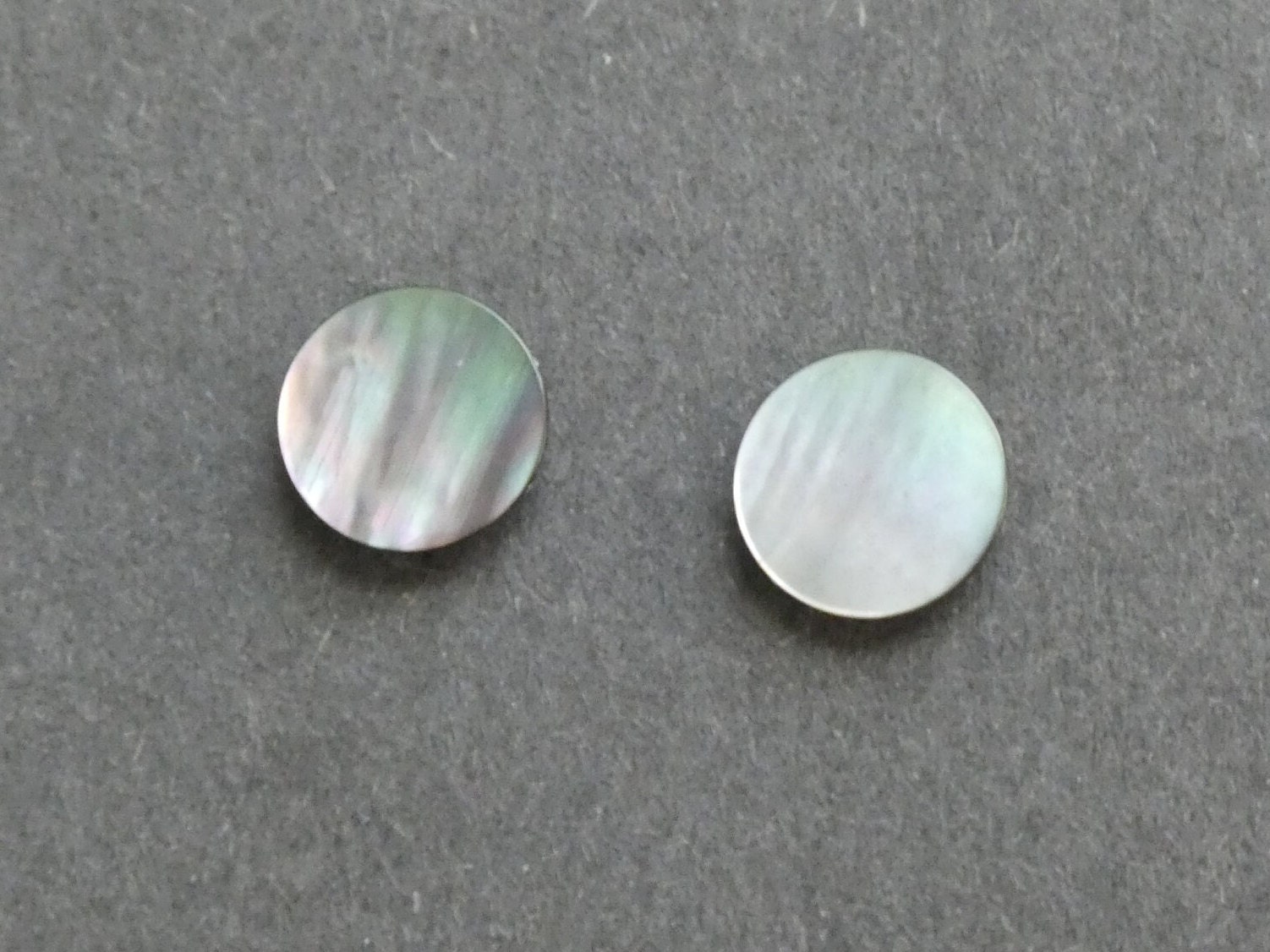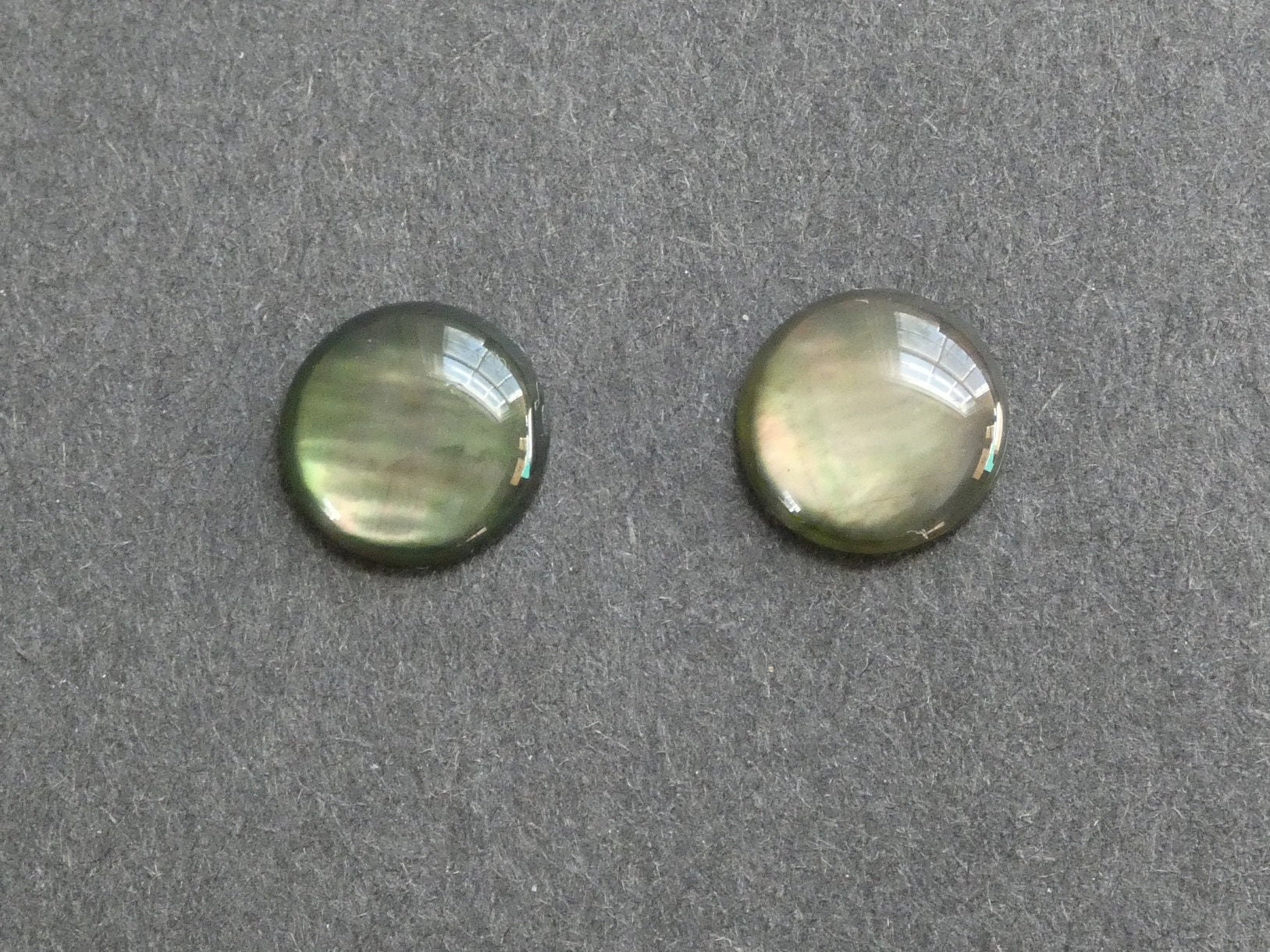This listing is for a 2 PACK of Natural Black Lip Shell cabochons. You will receive the exact cabochons from the ones pictured above in this listing. We only have this one unique cab set available so get it before it is gone! The 12mm round cabochons are carefully and skillfully shaped and polished. These black lip shell cabochons have a silver-grey color with a pearlescent sheen and are perfect for adding an eye catching look to your jewelry.