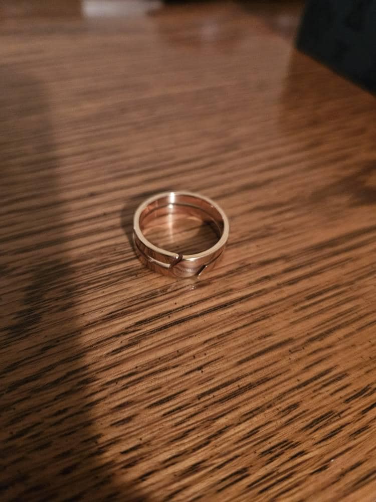 This listing is for a Rose Gold Modern Geometric Style Stainless Steel Ring. The ring features a unique geometric cut out style design. These unisex rings are great for a modern design without being too much for those who want just a subtle design.