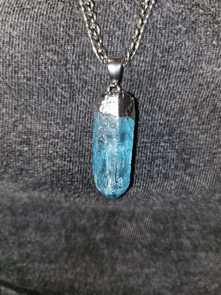30-45mm Natural Quartz Pendant With Brass Metal Loop, Dyed Teal and Silver, Polished, Crystal Nugget Pendant, Crystal Pendant, Quartz Charm