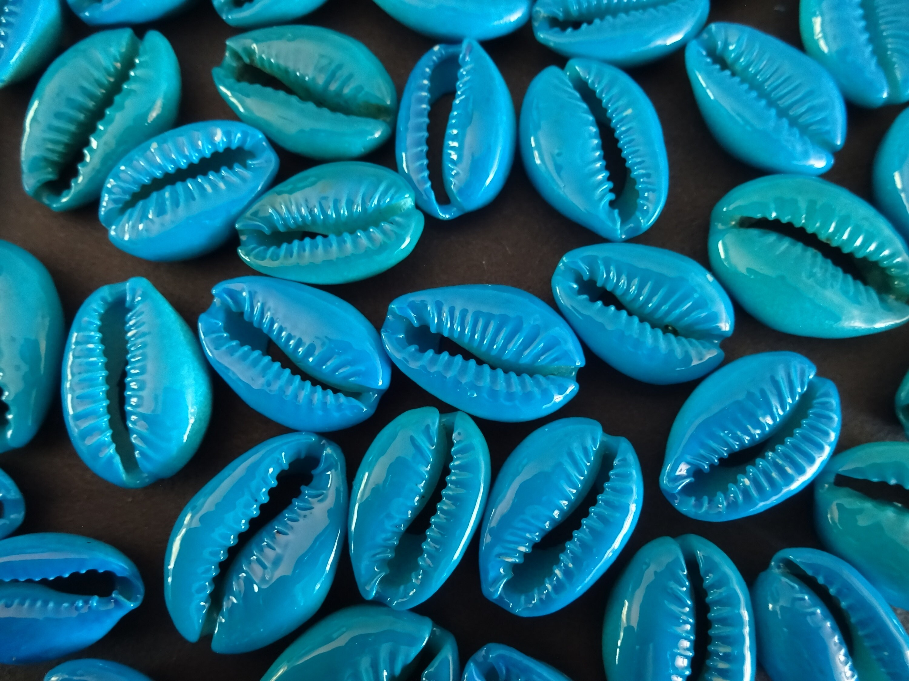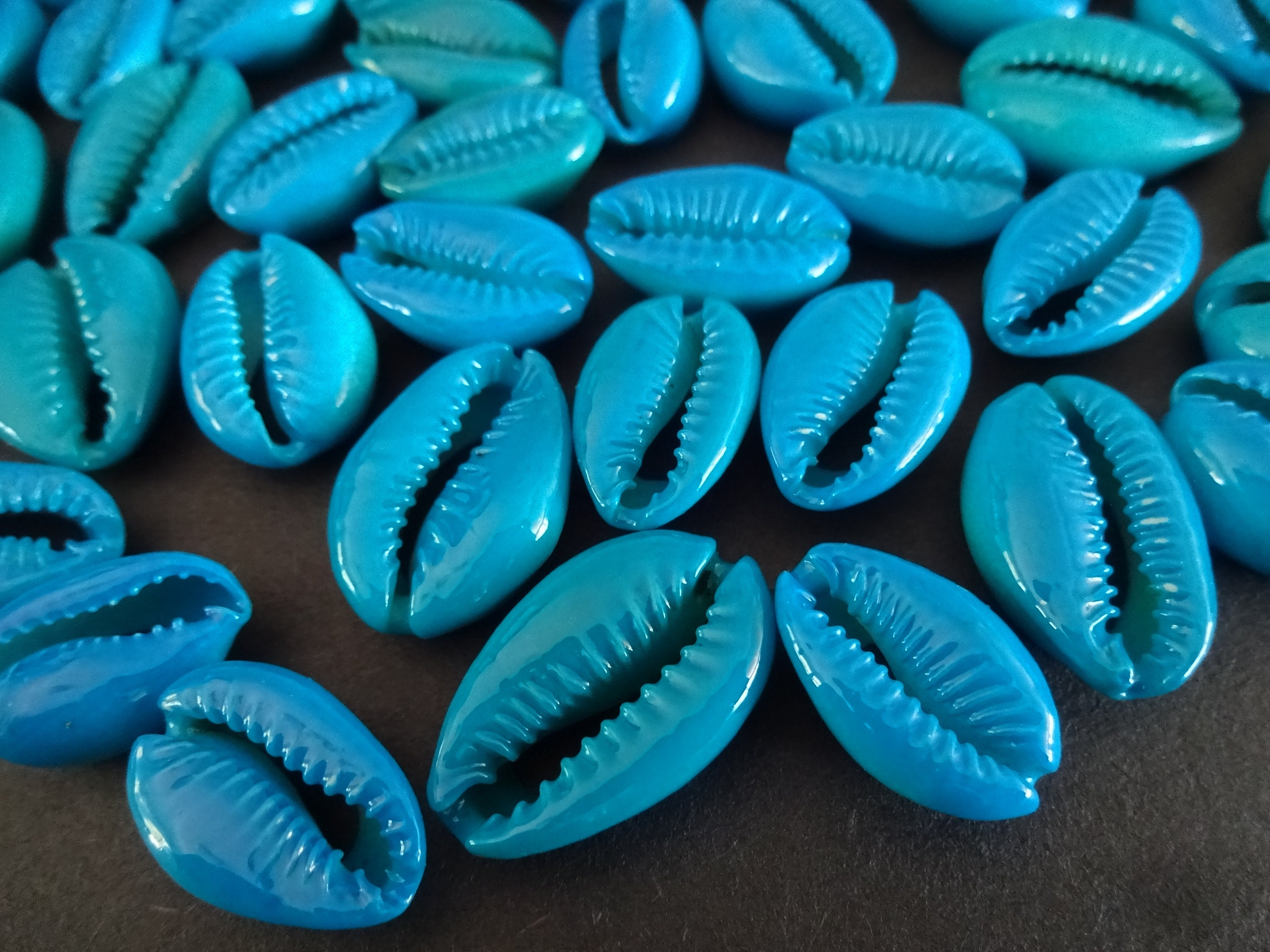 20-25mm Painted Natural Cowrie Shell Beads, Undrilled Spiral Shell, Blue Color, Natural Shell, Cowries, Beach Shells, Painted Shell