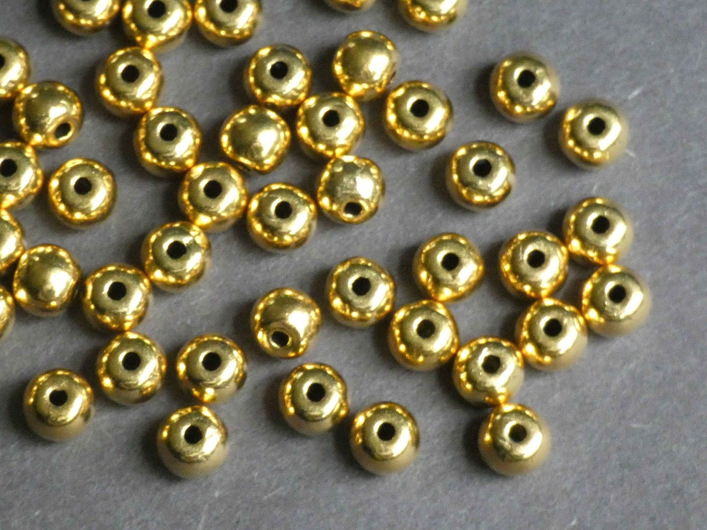 This listing is for a 50 PACK of antiqued gold color zinc alloy 6mm ball bead. These simple ball beads are made of Alloy Metal and have a 1.5mm hole. These beads feature a classic antiqued shiny gold color.