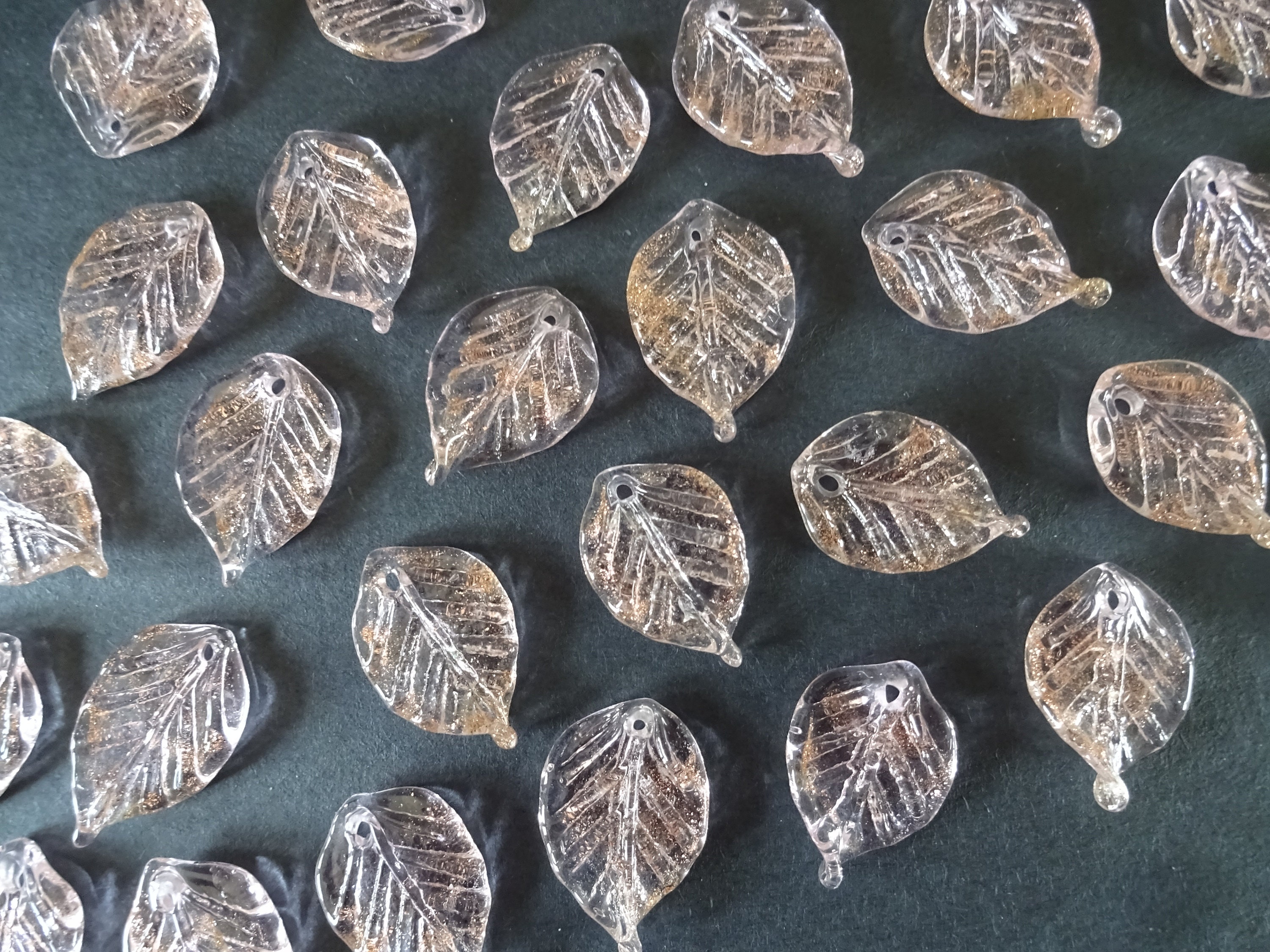 This listing is for a 10 pack of handmade lampwork glass leaf pendant. Each leaf is 23x15mm with a 1-1.5mm hole. These glass leaves are great for spring and Easter jewelry and arts & crafts projects. With each order you will receive 10 randomly selected leaves.