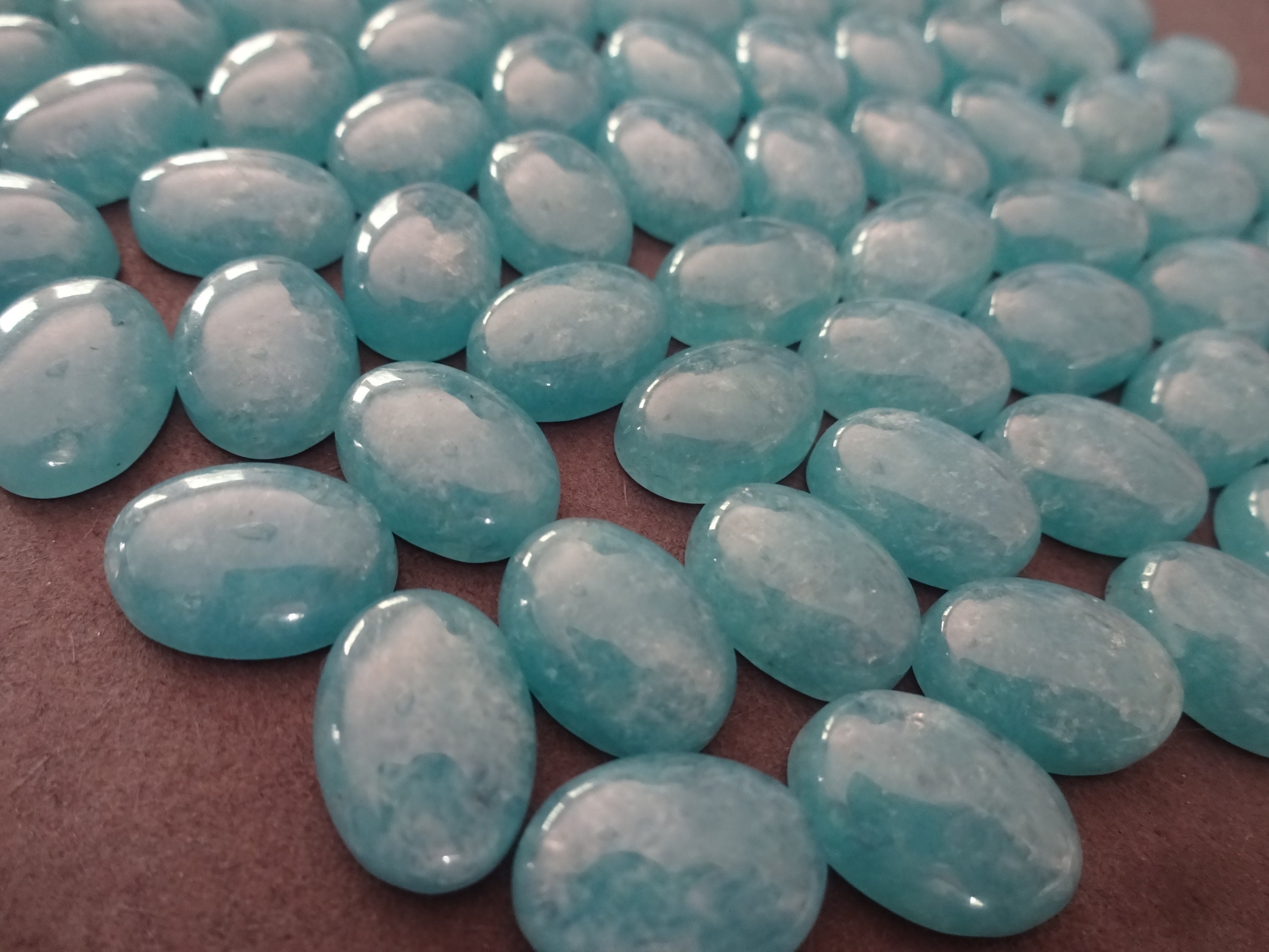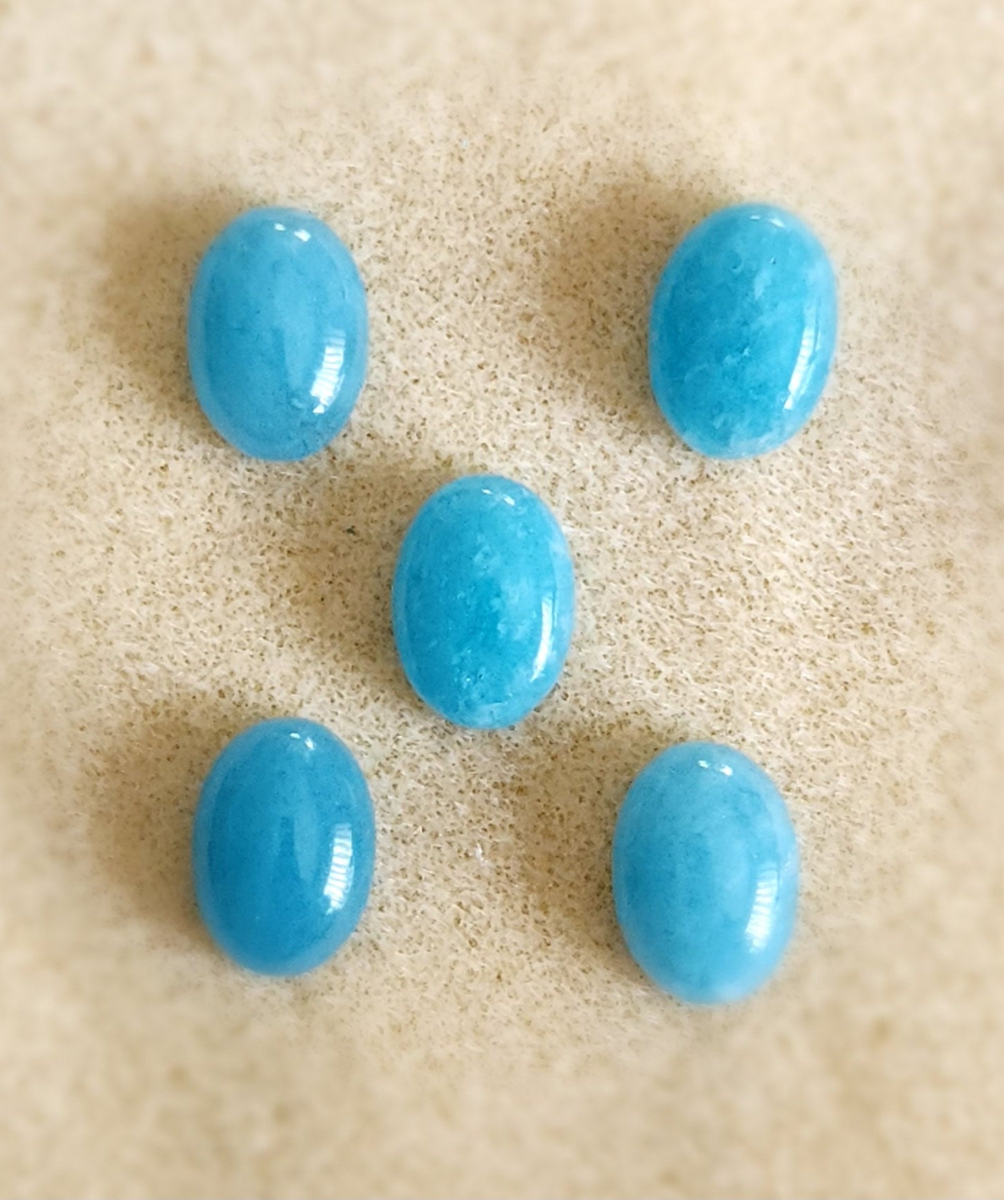 This listing is for a beautiful natural Quartz dyed polished cabochon. Each 14x10x3.5mm oval cabochon is carefully and skillfully shaped and polished. These elegant Quartz stones feature an aquamarine blue color and are perfect for all natural gemstone jewelry pieces.