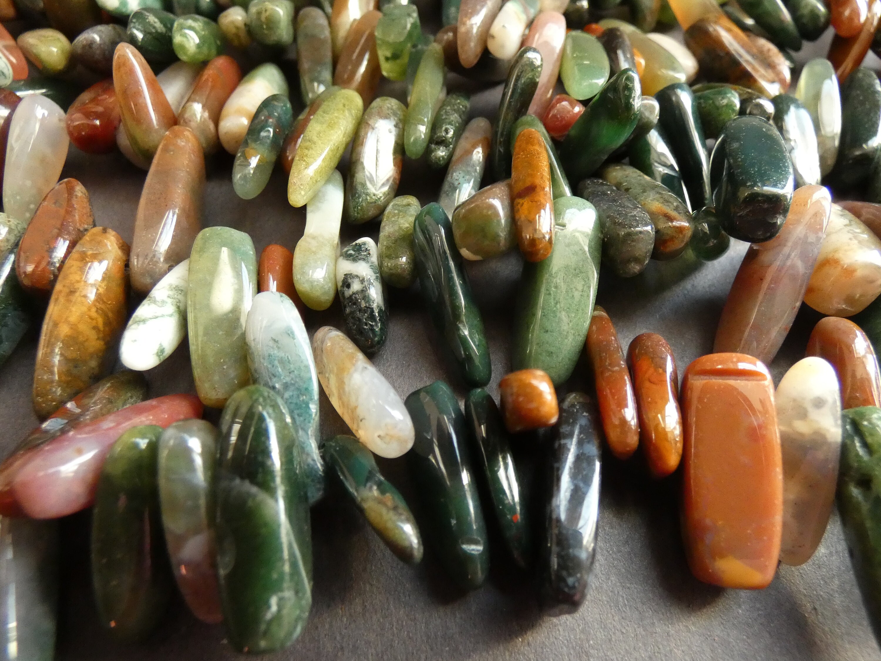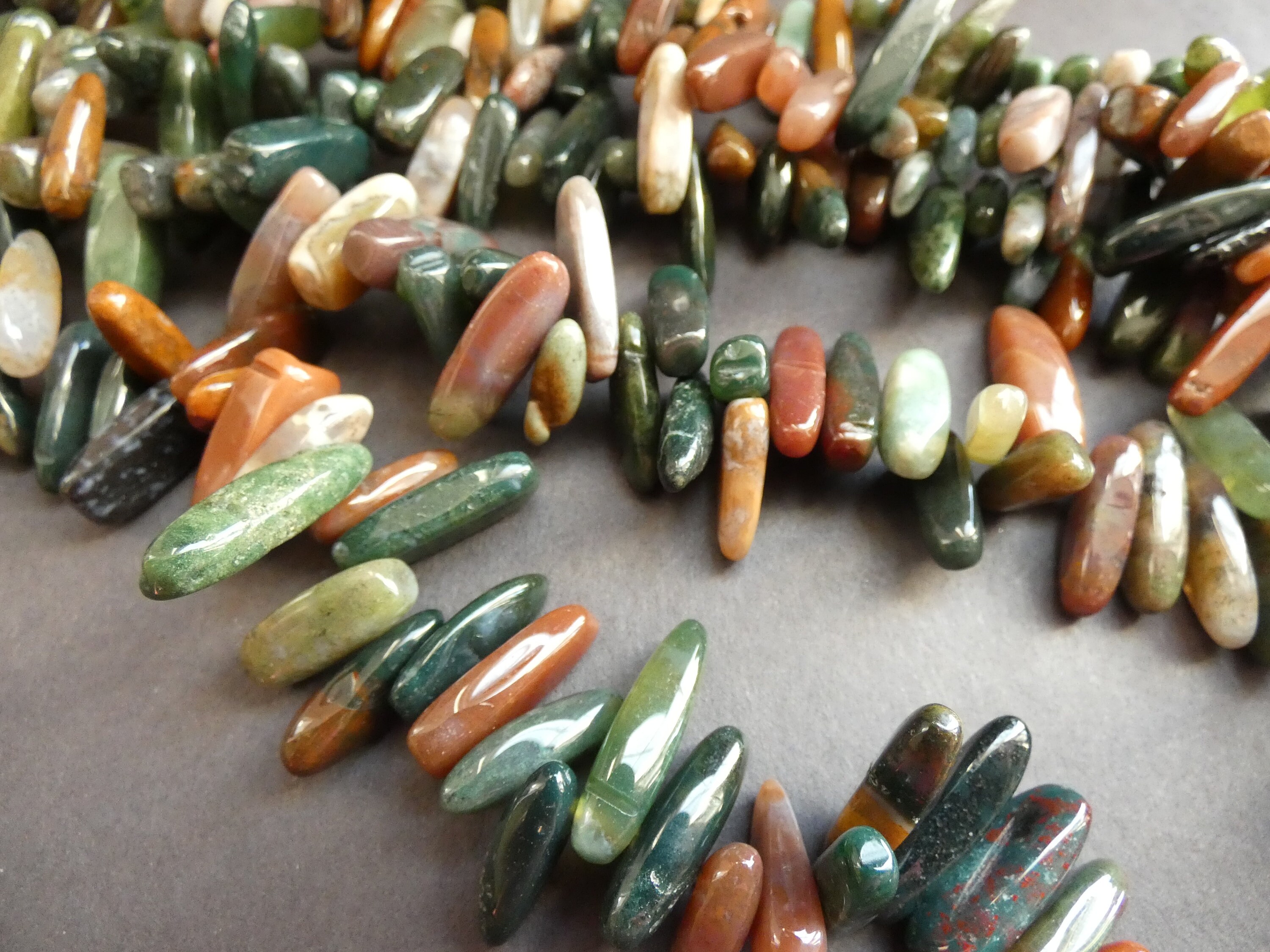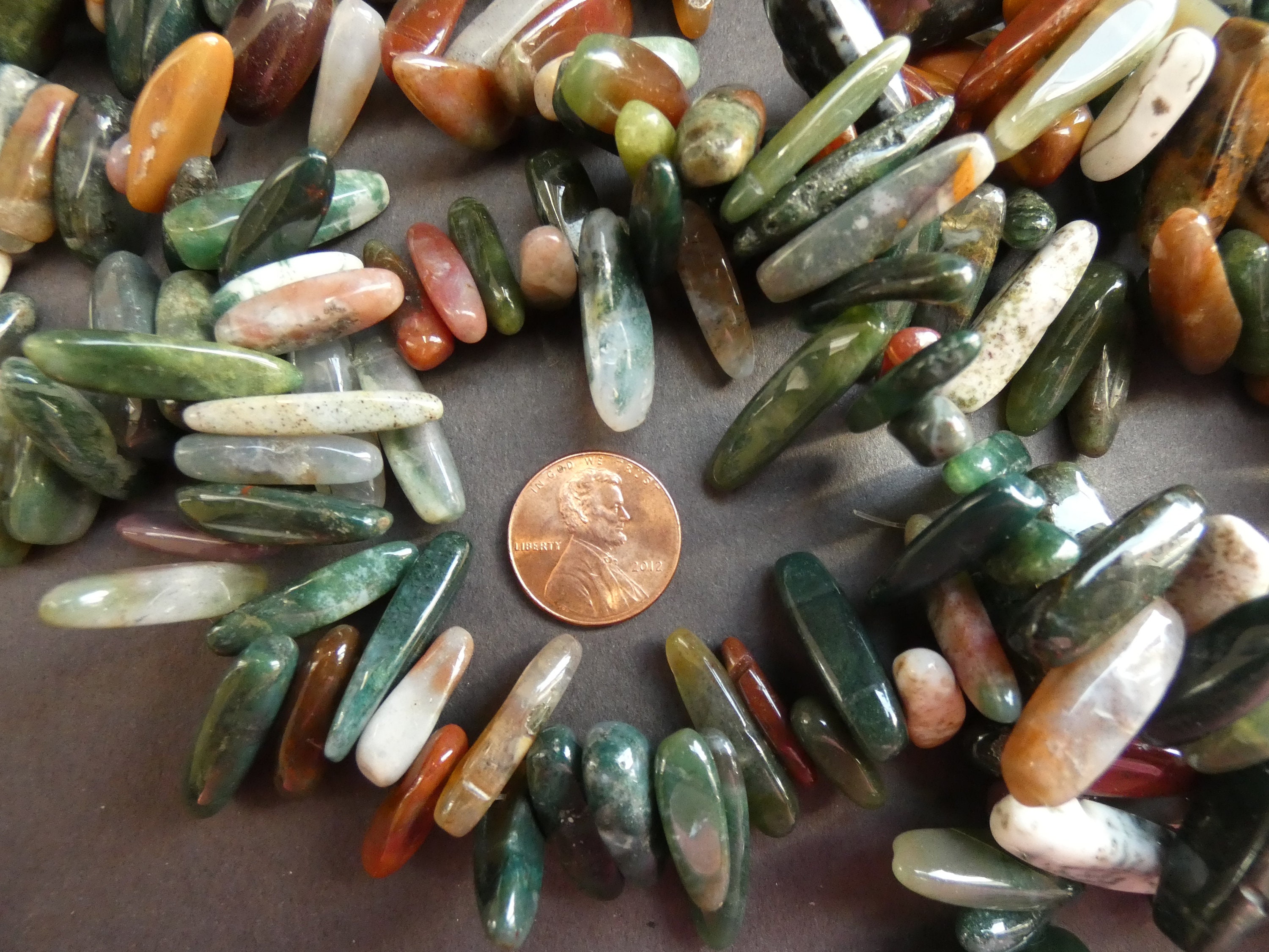 This listing is for a 15.3-15.7 inch strand of about 150 Natural Indian Agate gemstone beads. The beads are made of Natural Agate and feature a mix of neutral earthy colors. Each nugget bead is 8-30x5-12mm in size with a 1mm center drilled hole. These beautiful Agate beads are perfect for mixing and matching with other gemstone beads.