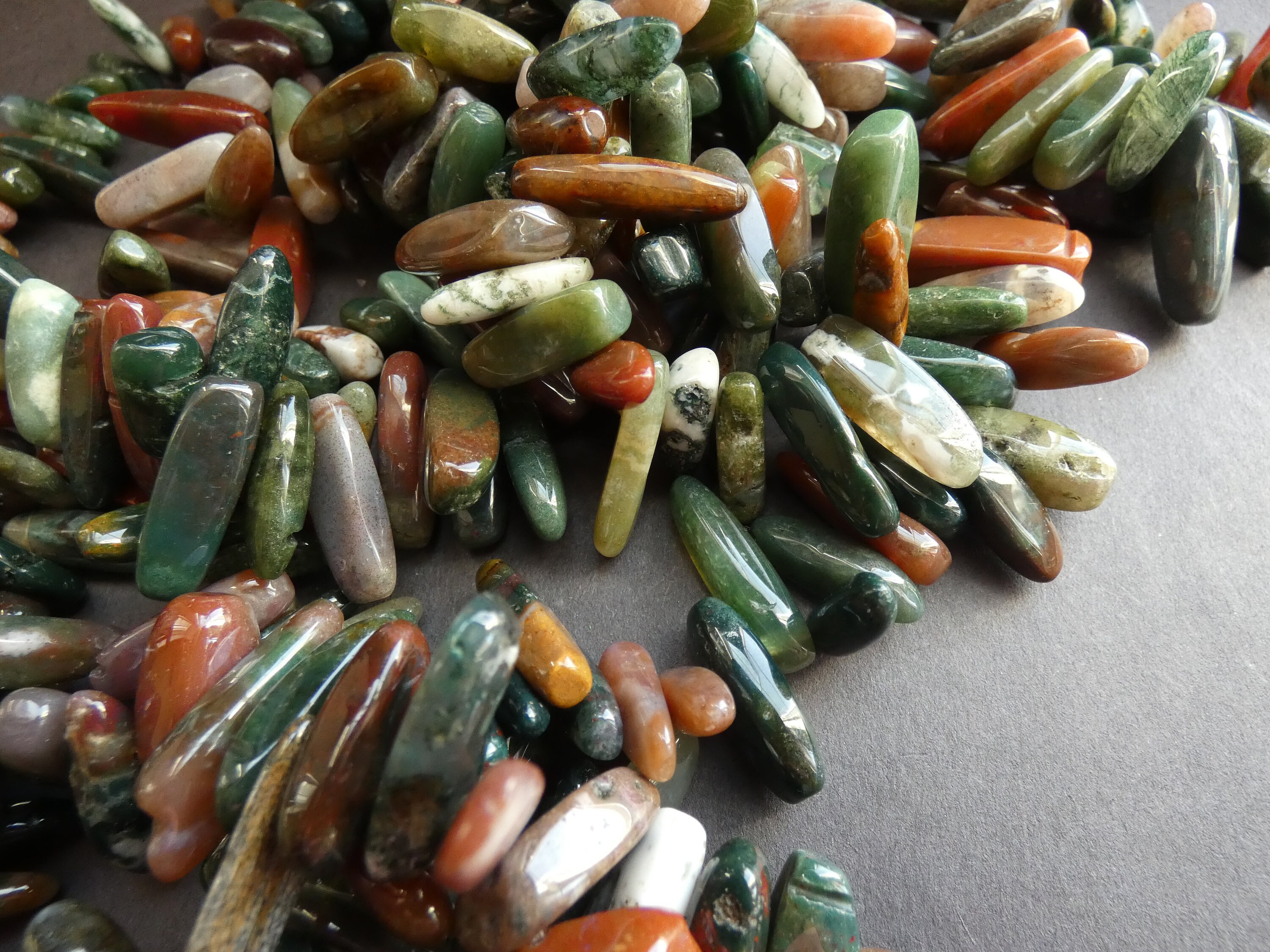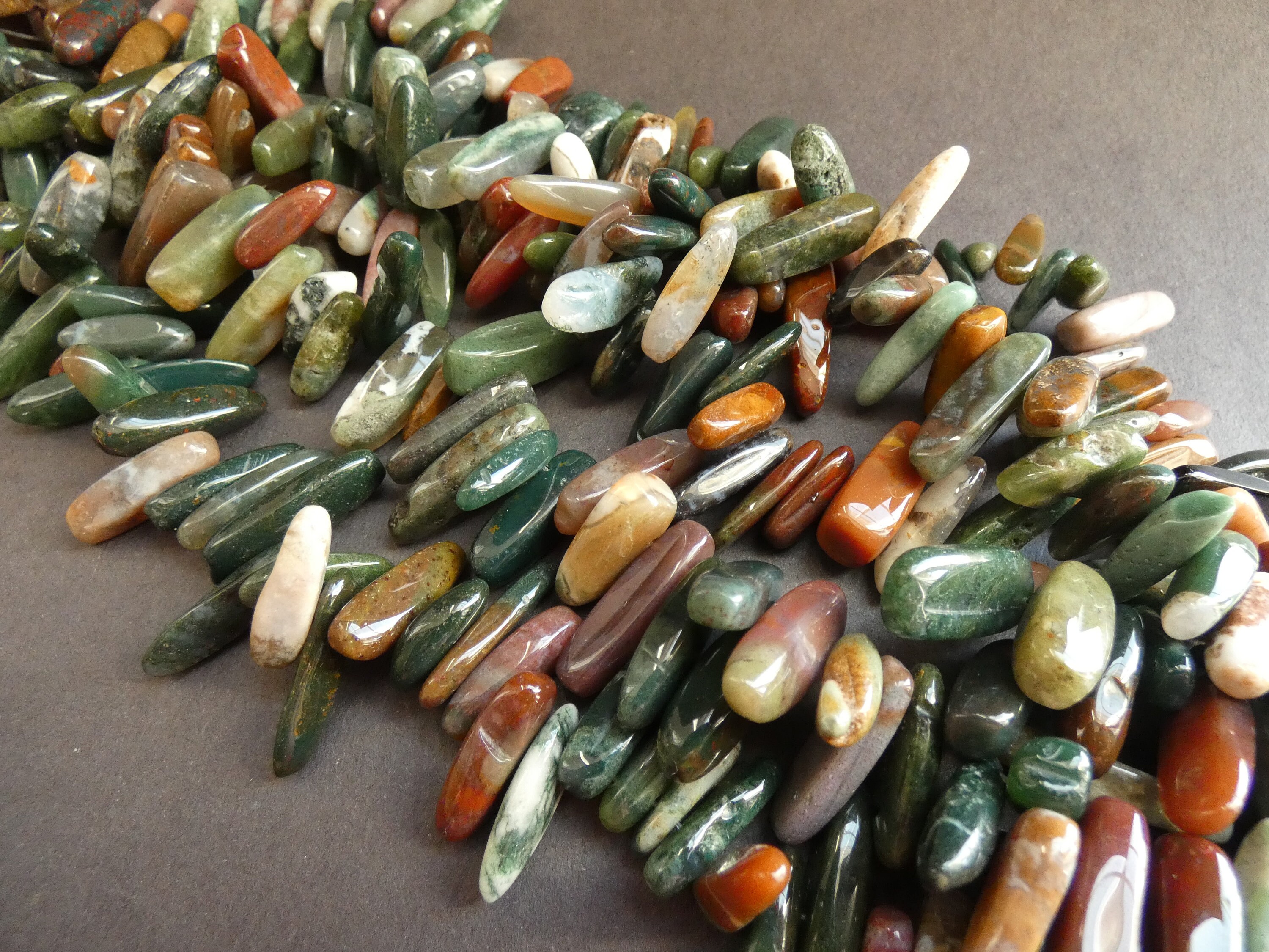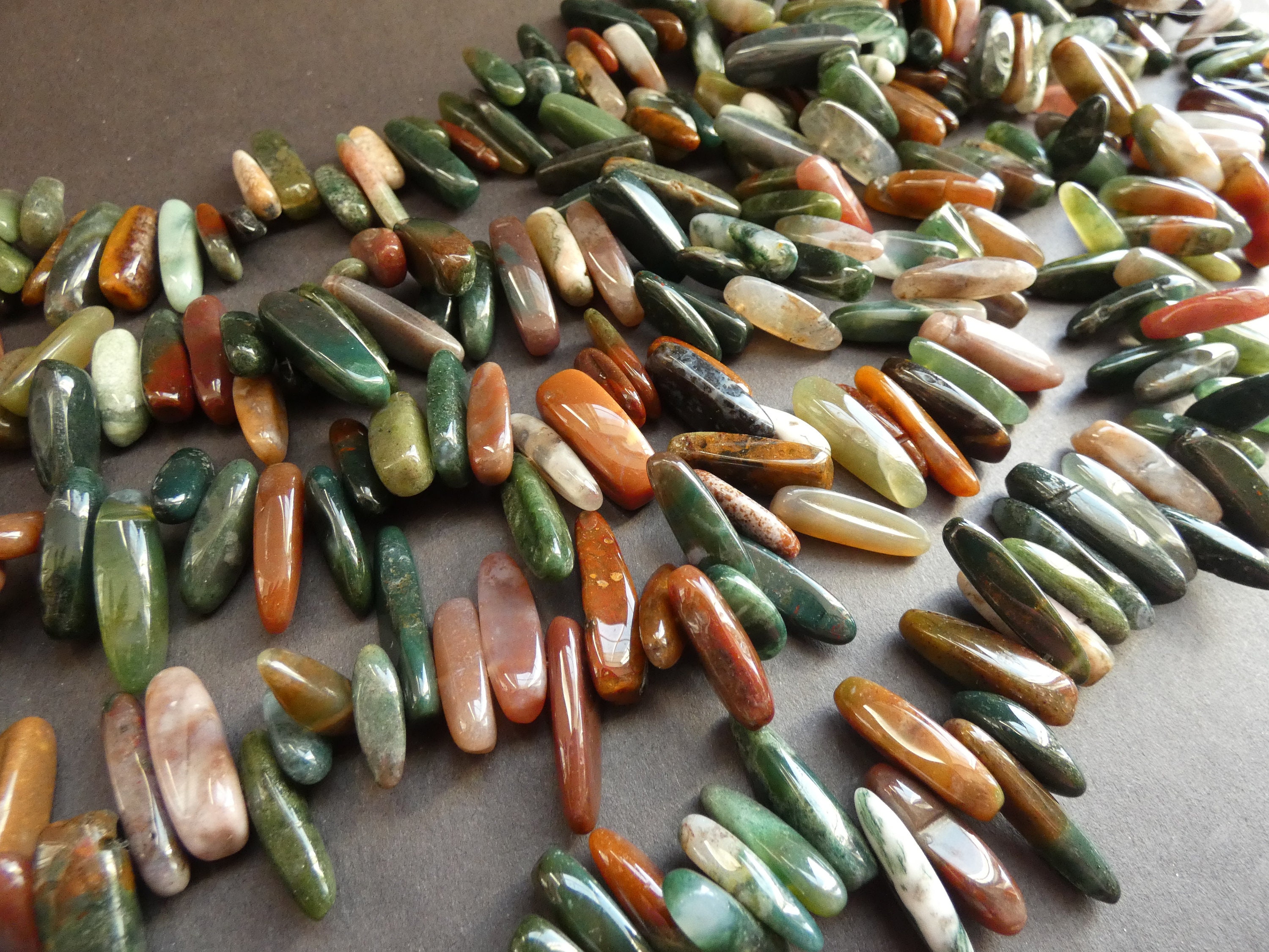 This listing is for a 15.3-15.7 inch strand of about 150 Natural Indian Agate gemstone beads. The beads are made of Natural Agate and feature a mix of neutral earthy colors. Each nugget bead is 8-30x5-12mm in size with a 1mm center drilled hole. These beautiful Agate beads are perfect for mixing and matching with other gemstone beads.