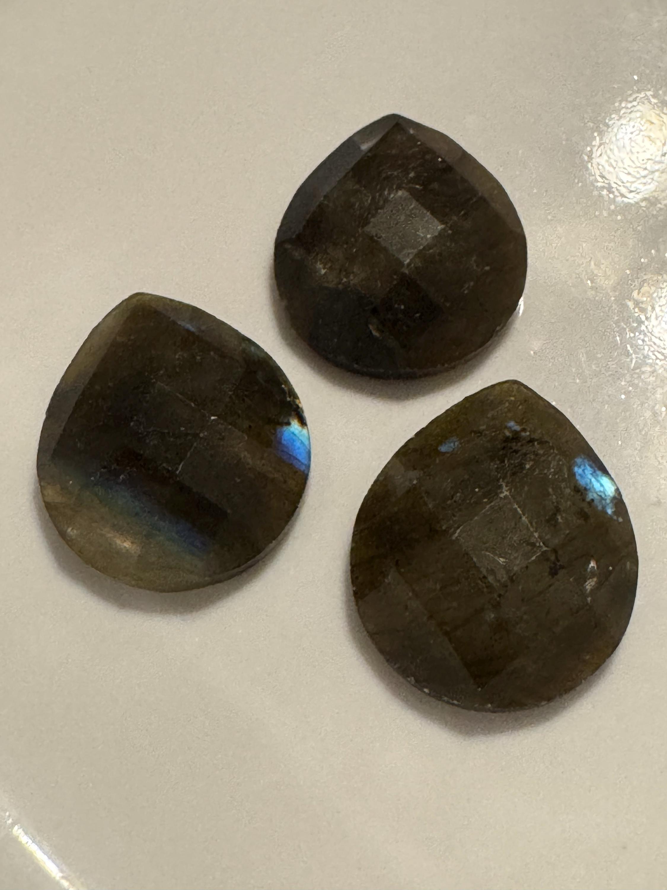 Gorgeous labradorite teardrops! Beautiful faceting with flashes of blue in the gray base. Excellent polish and quality stones, shipped quickly as always!