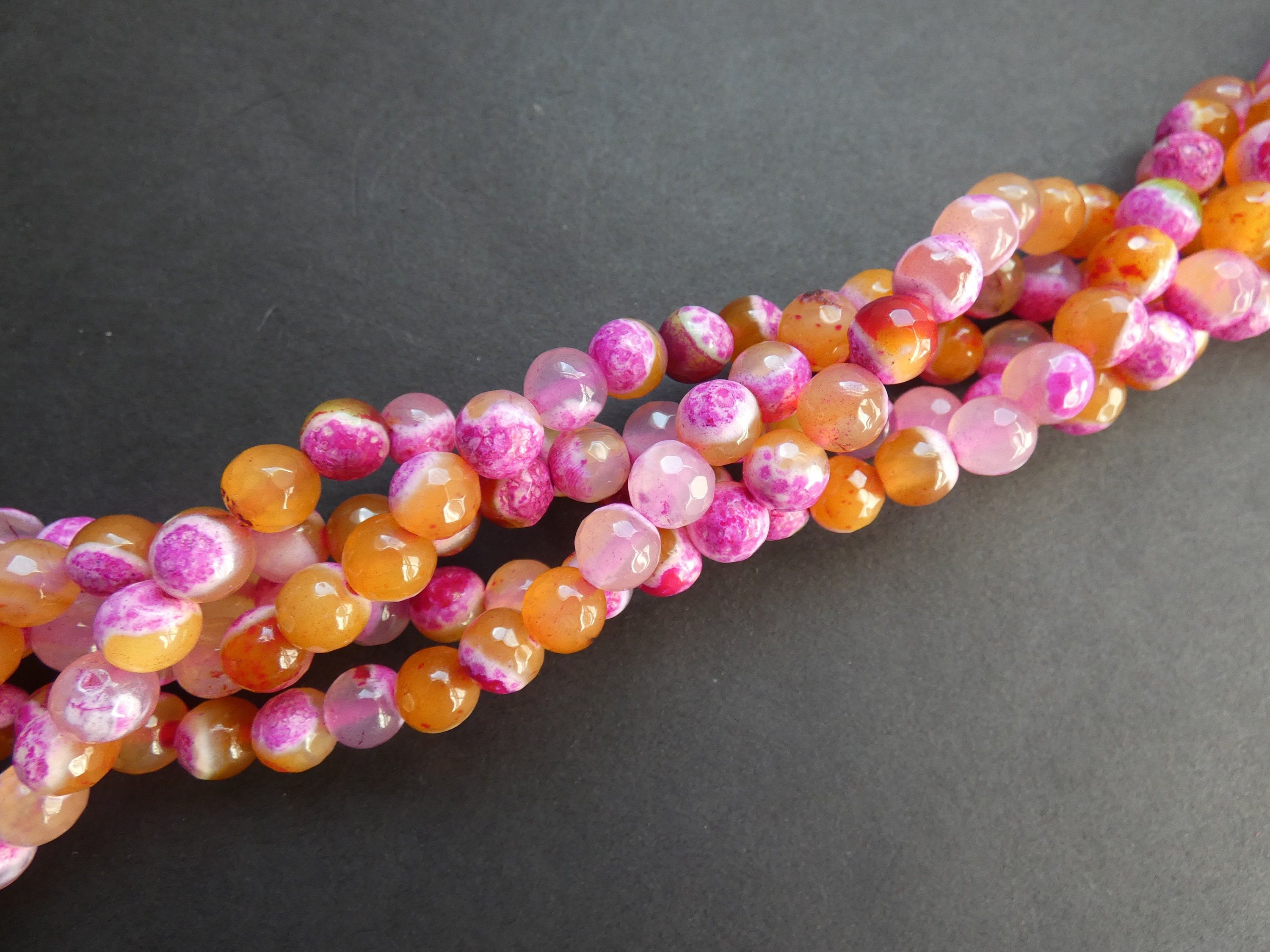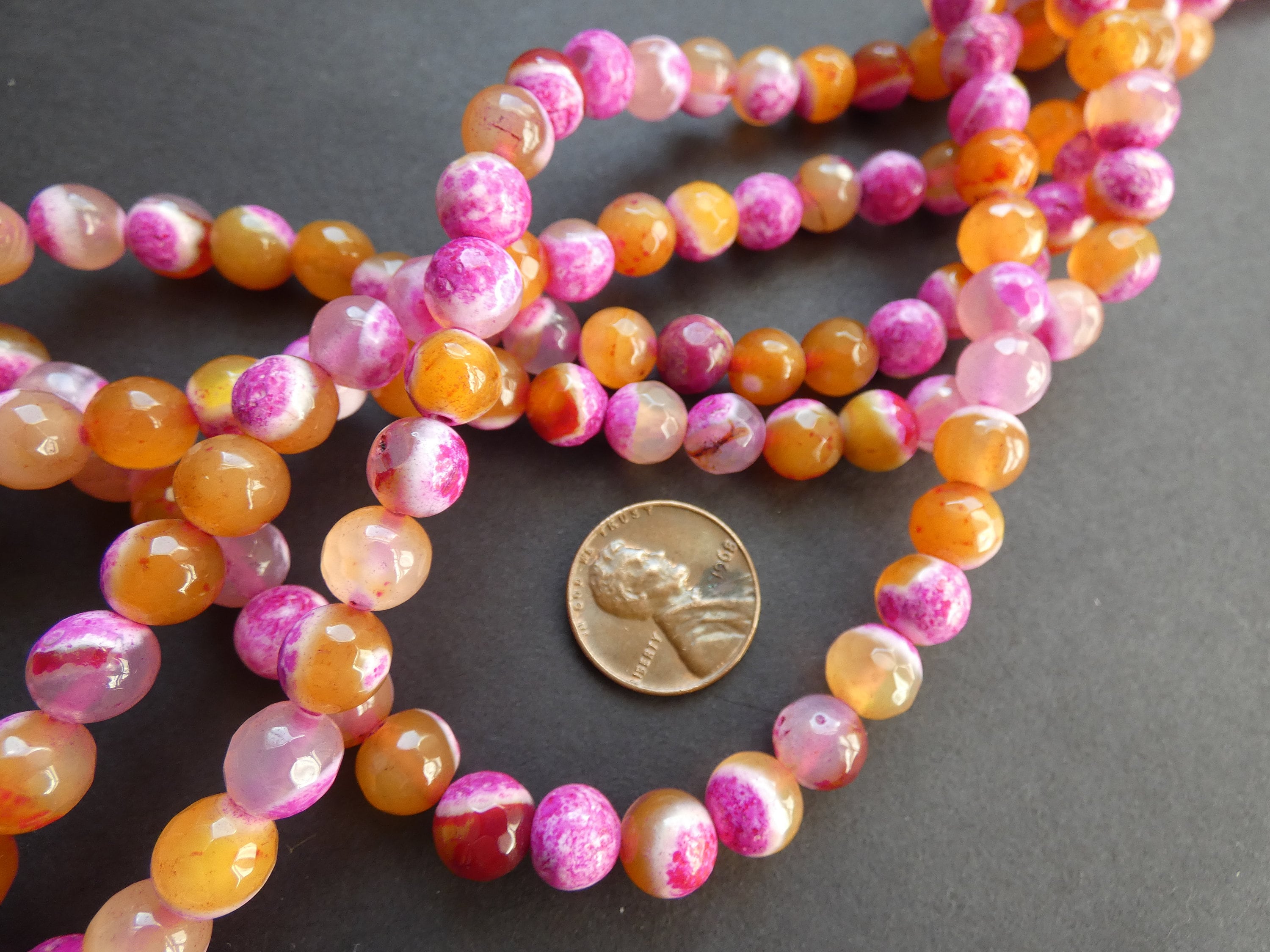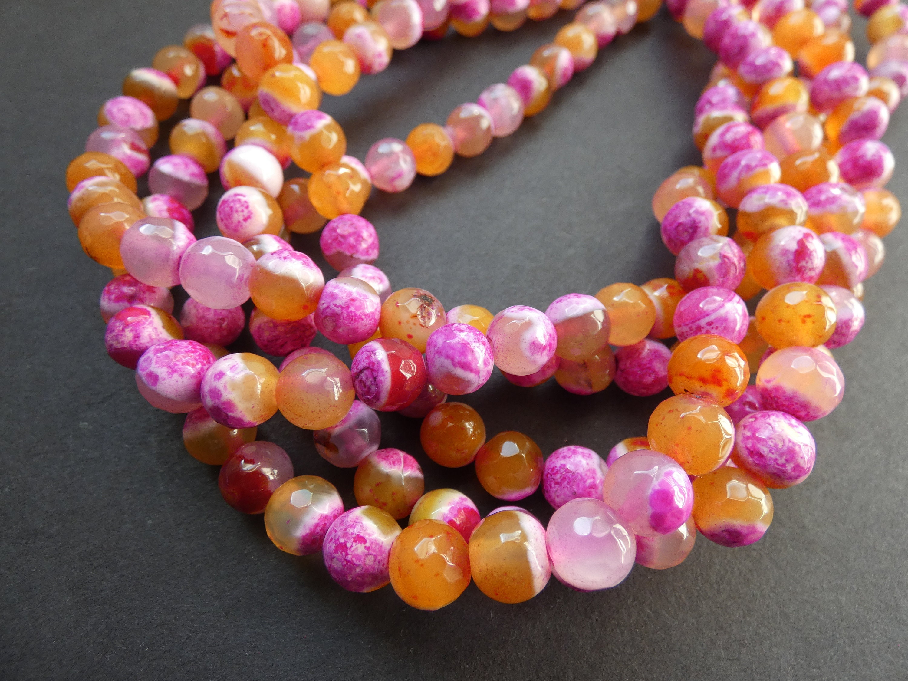 This listing is for a natural dyed and heated Fire Agate faceted ball bead strand. The beads are each 8mm with a 1mm hole and feature a beautiful yellow and pink swirled color. Each order will receive a 15 inch strand of the stone beads. Each strand contains about 47 beads.